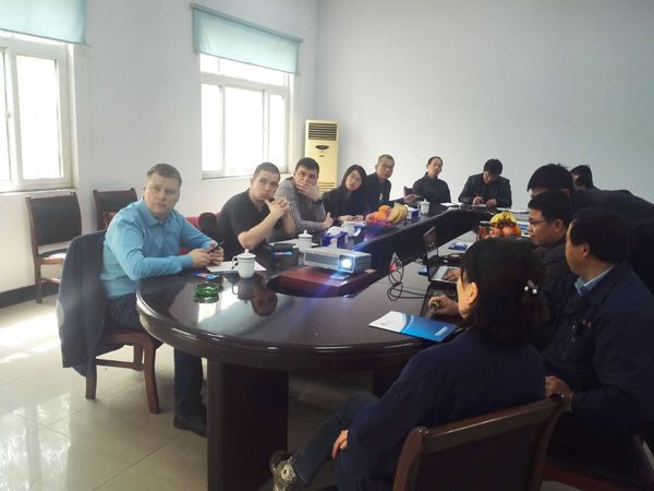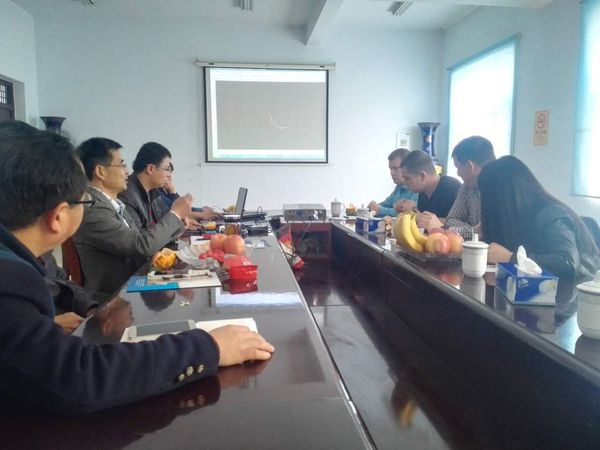 俄罗斯客人在会议室听我公司工作人员讲解公司发展状况及工程进展情况