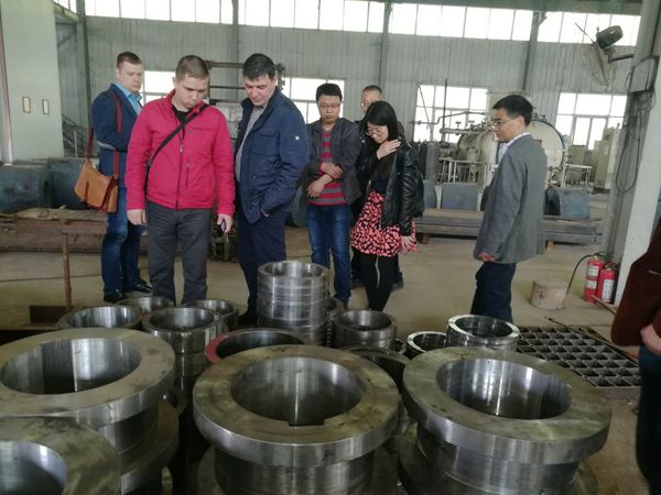 热烈欢迎俄罗斯客人和石家庄中泰制管技术开发有限公司领导,光临我公司现场指导720机组轧辊生产进度